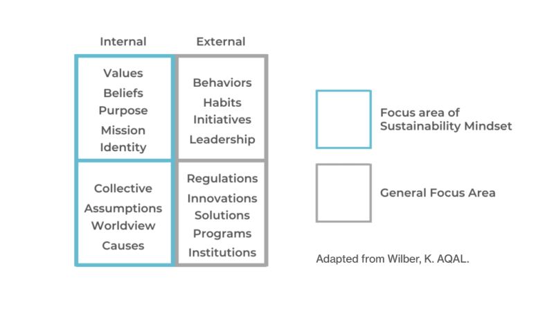 The Sustainability Mindset is a way of thinking and being that results from a broad understanding of the ecosystem, from social sensitivity, and an introspective focus on our personal values and higher self. It finds its expression in actions for the greater good. (Kassel, Rimanoczy, Mitchell, 2018)